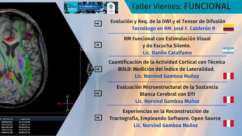 El programa del congreso incluye presentaciones orales, talleres y mesas redondas, cubriendo diversos temas relacionados con la Resonancia Magnética; con destacados Invitados Internacionales y Nacionales